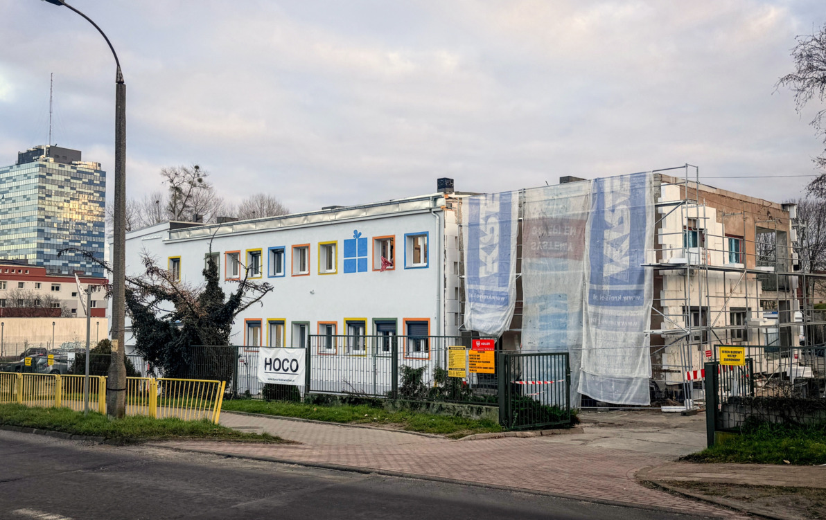 Kolorowa i pełna energii elewacja nadaje nowy charakter Zespołowi Szkół nr 14, gdzie prace termomodernizacyjne postępują zgodnie z harmonogramem. W ramach inwestycji ściany zewnętrzne i dachy obu budynków zostały docieplone, a stare okna wymienione na nowe.