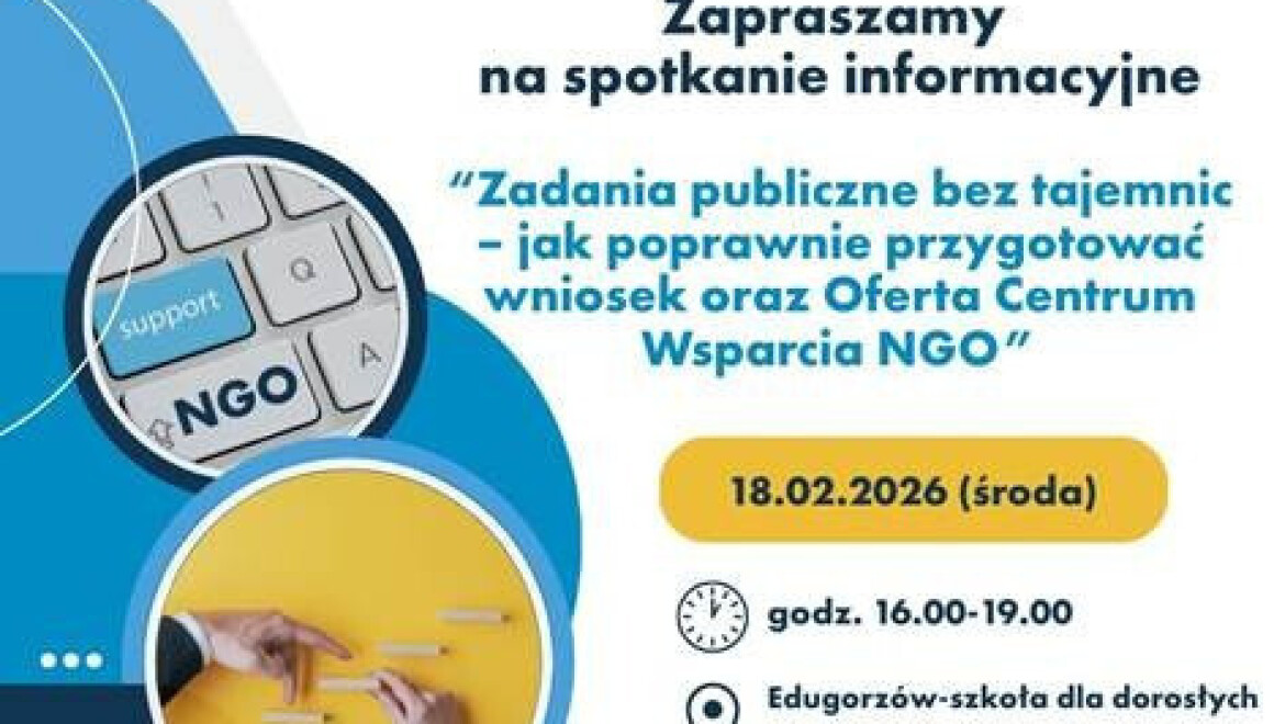 Pierwszym krokiem do wzmocnienia lokalnych organizacji będzie najbliższe szkolenie pod hasłem „Zadania publiczne bez tajemnic – jak poprawnie przygotować wniosek oraz oferta Centrum Wsparcia NGO”.