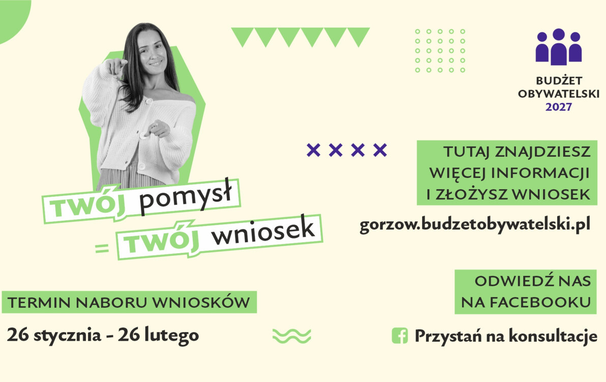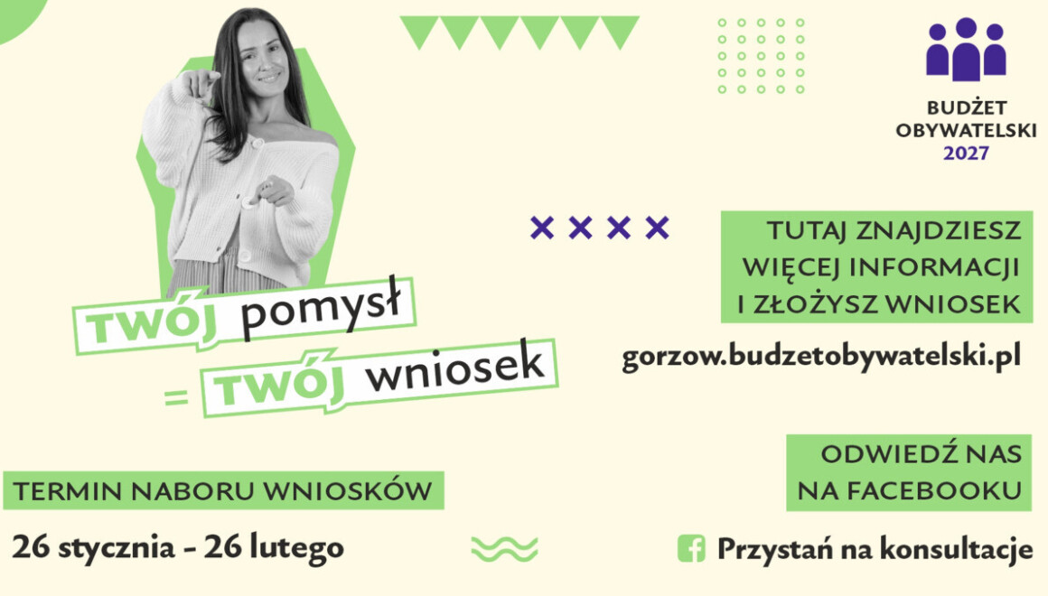 Nabór zakończy się w czwartek 26 lutego. Projekty można składać na stronie www.gorzow.budzetobywatelski.pl lub w formie papierowej w kancelarii Urzędu Miasta przy ul. Sikorskiego 5. Szczegóły na ww. stronie. Zachęcamy także do śledzenia informacji na FB|Przystań na konsultacje.