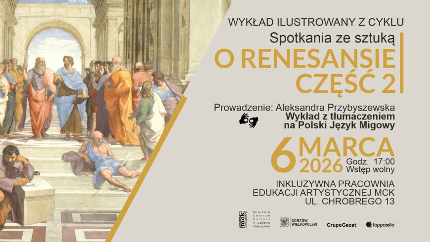 Podczas spotkania odkryjemy przełomowe dzieła i idee, które zapoczątkowały wielką zmianę w kulturze europejskiej. Wykład łączy przystępną narrację z bogatym materiałem wizualnym, dzięki czemu sztuka ożywa na oczach uczestników. To doskonała okazja, by poszerzyć wiedzę i doświadczyć historii sztuki w inspirującej atmosferze.