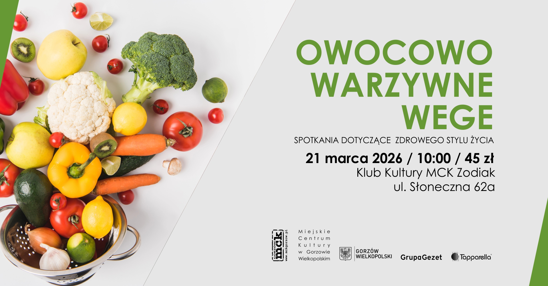 Owoce i warzywa to klucz do zdrowia. Podczas warsztatów będziemy łączyć sezonowe produkty w estetyczne, kolorowe kompozycje, które staną się źródłem niezbędnych dla zdrowia i urody witamin oraz minerałów.