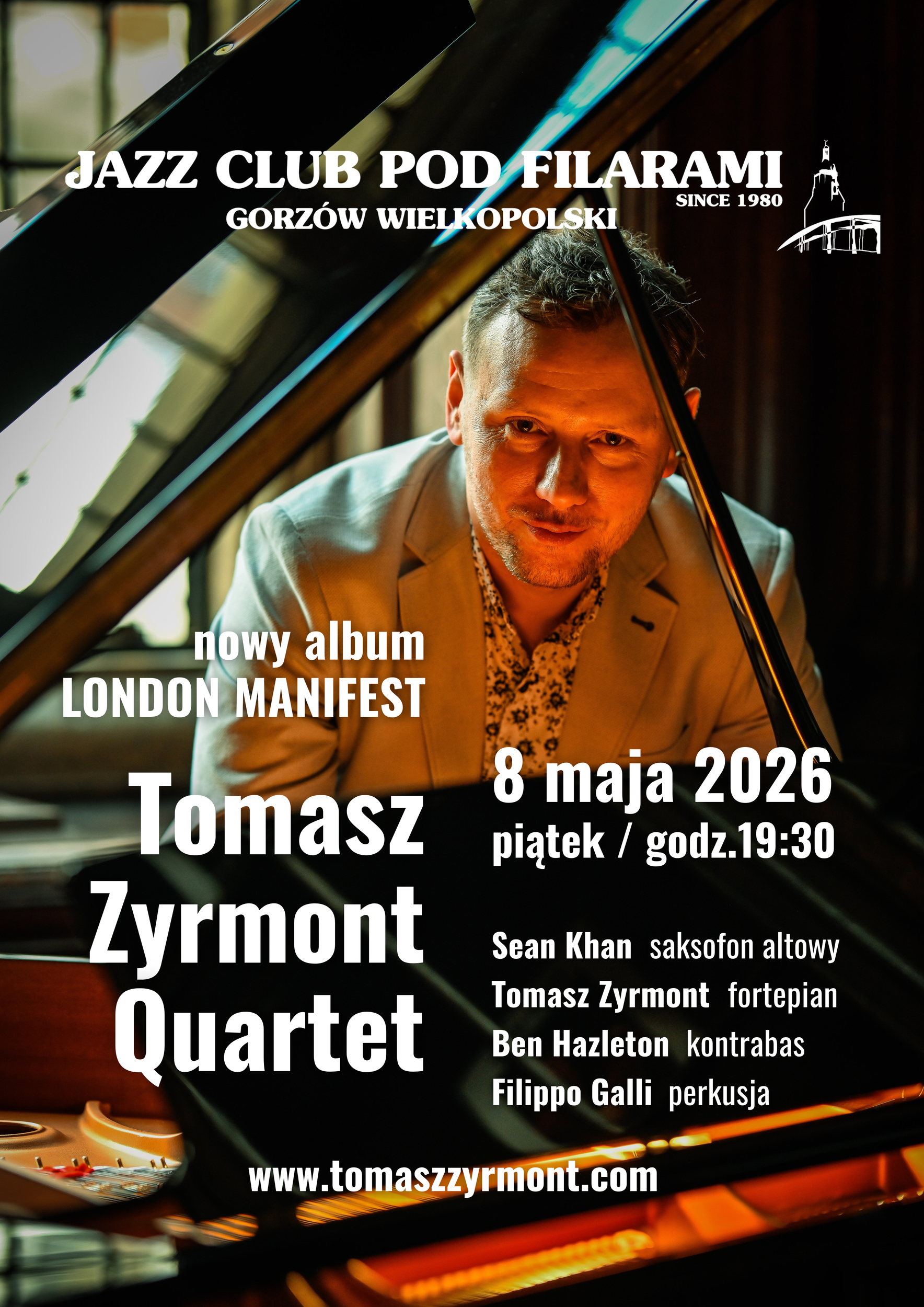 Już w piątek, 8 maja 2026, na scenie Jazz Clubu Pod Filarami zagra ponownie Tomasz Zyrmont Quartet – tym razem z najnowszym albumem London Manifest, który ukazał się na rynku muzycznym w styczniu tego roku.
